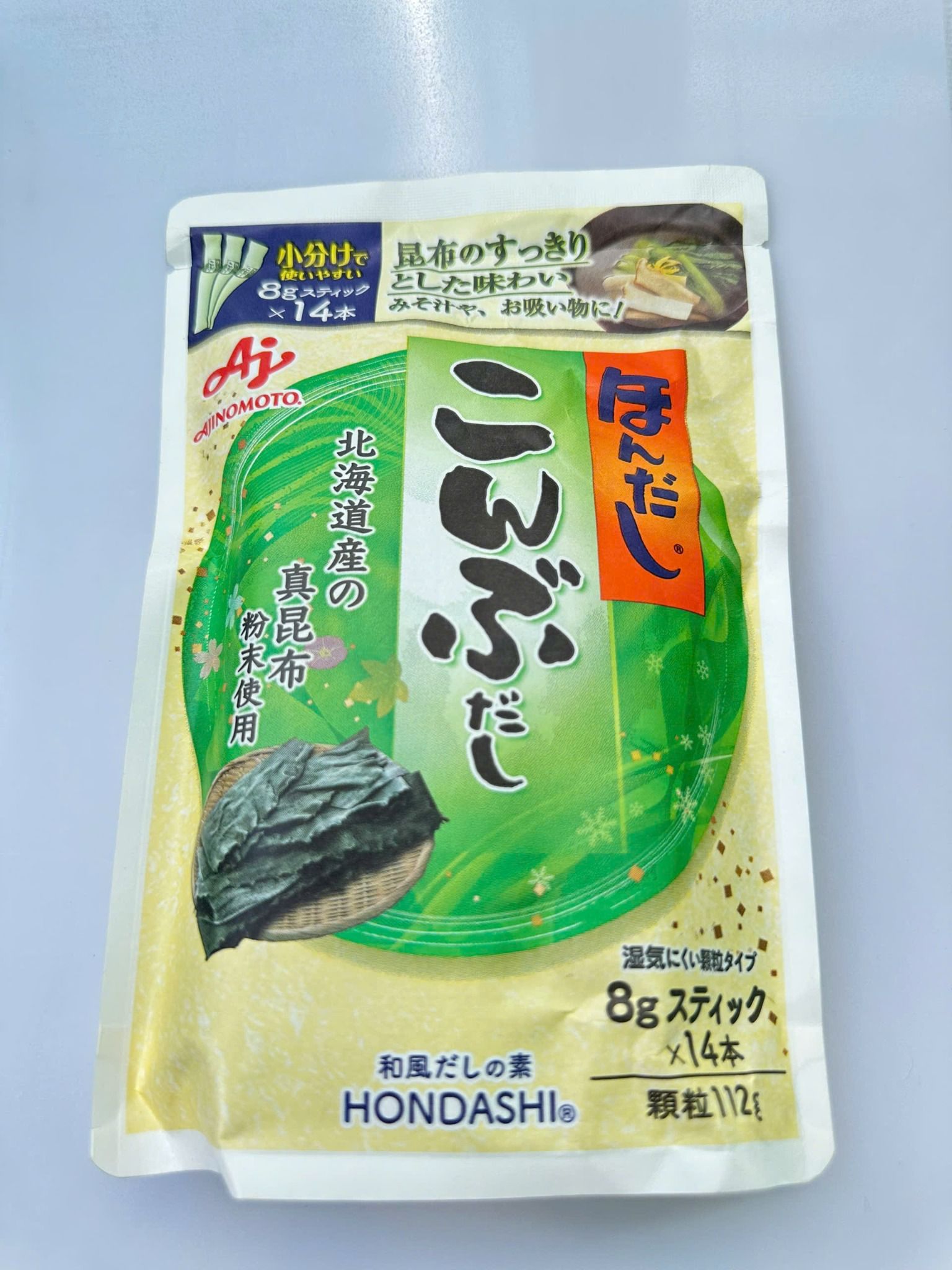 Bột nêm rong biển KONBUDAISHI Ajinomoto 112 g là bột nêm chay, dùng để nêm nếm các món súp, canh... thay thế cho bột ngọt hoặc các bột nêm thông thường.