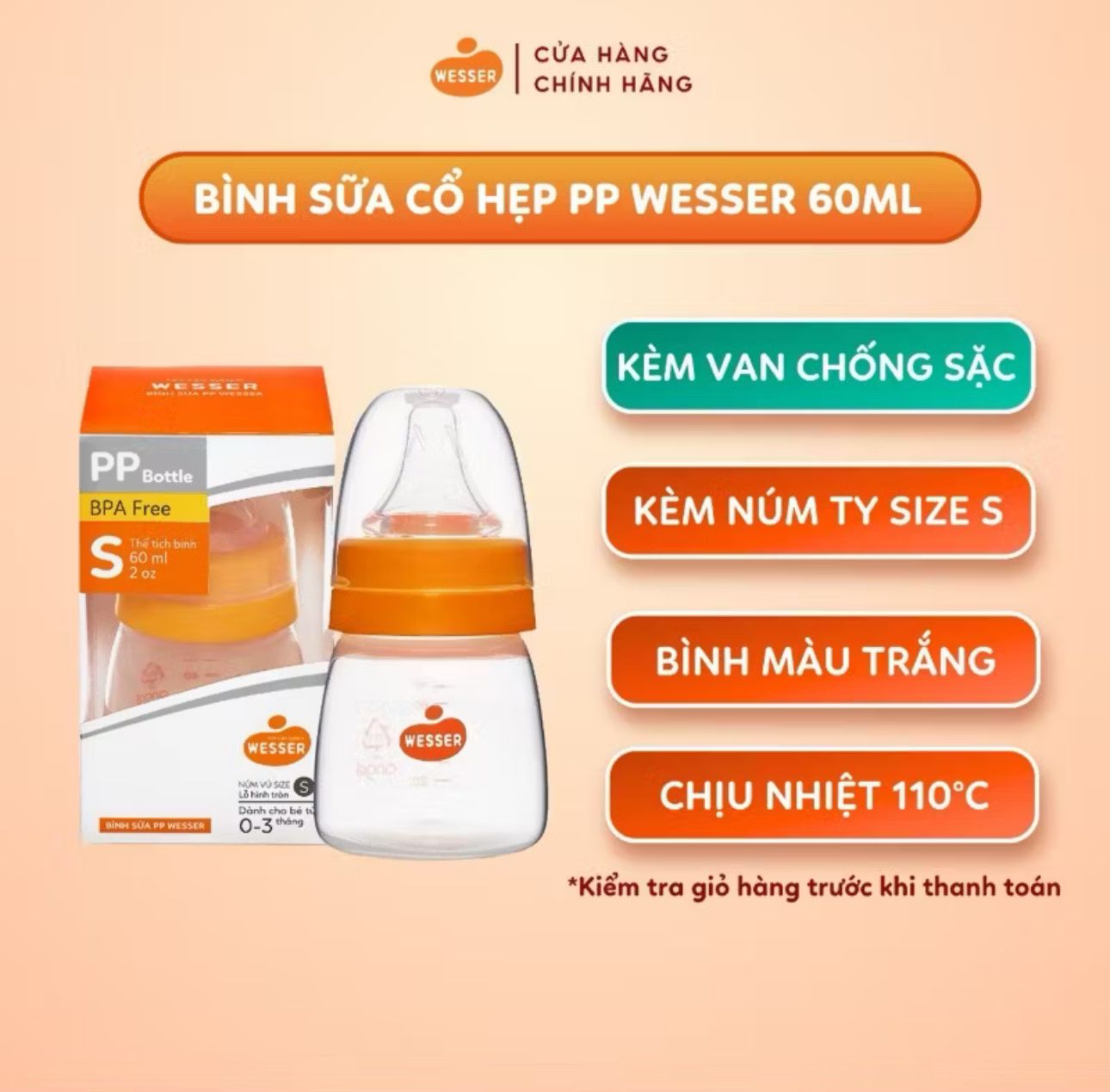 BÌNH SỮA WESSER CỔ HẸP 60ML/140ML/250ML
