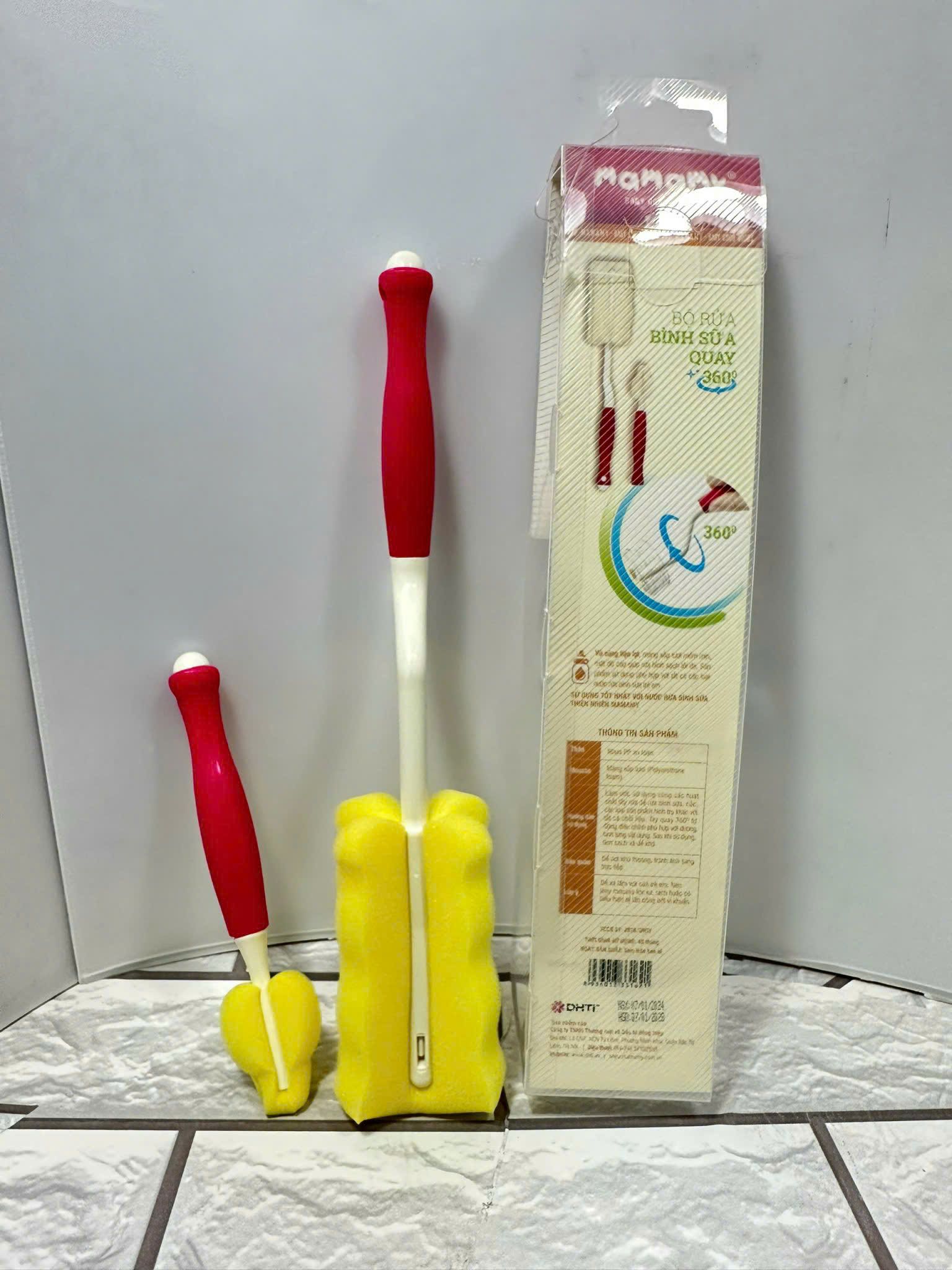 : Cây súc bình Mamamy có khả năng xoay 360 độ, giúp bạn dễ dàng tiếp cận mọi ngóc ngách bên trong bình sữa, loại bỏ hoàn toàn cặn bẩn và vi khuẩn.Phù hợp với tất cả các loại nước rửa bình
