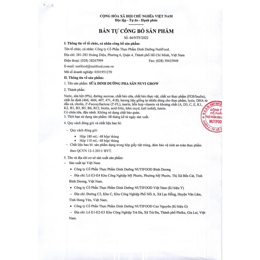 Lốc 4 hộp sữa bột pha sẵn Nuvi Grow 180ml