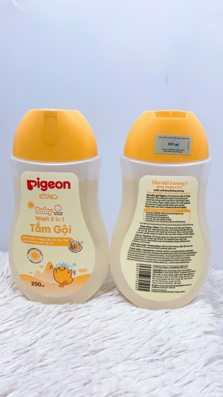 - Tắm gội 2 trong 1 Pigeon là sự kết hợp của dầu gội và sữa tắm trong cùng một hợp chất, với công thức dành riêng cho bé nhẹ nhàng làm sạch tóc, da đầu và giúp làn da toàn thân bé mịn màng.