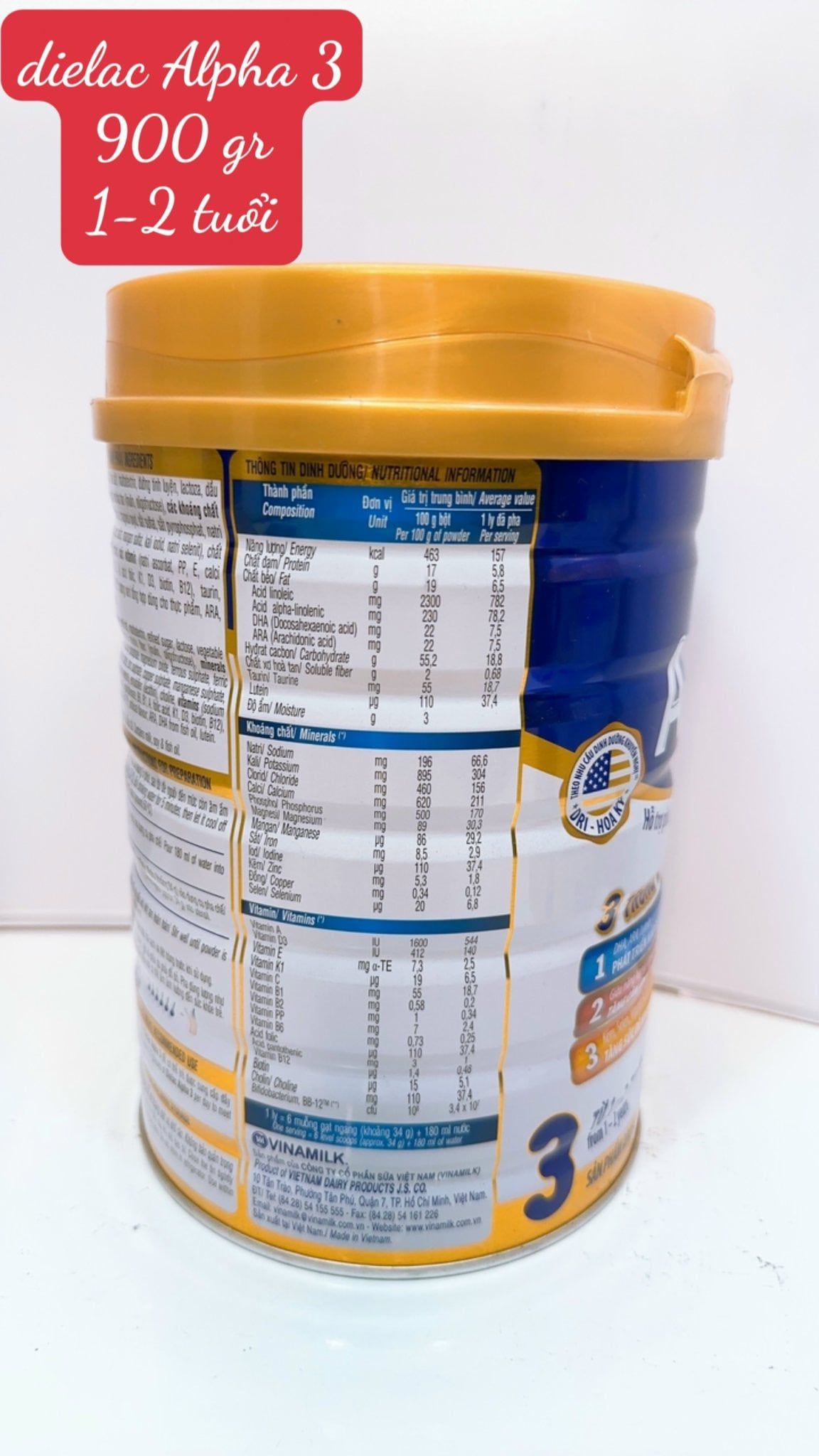 Sữa bột Vinamilk Dielac Alpha Step 3 với công thức 3 trong 1 cung cấp đầy đủ các dưỡng chất thiết yếu hỗ trợ phát triển não bộ, giúp tăng cân, chiều cao và tăng sức đề kháng. Sản phẩm được nghiên cứu đáp ứng tiêu chuẩn thực phẩm Quốc tế - Codex và Nhu cầu dinh dưỡng khuyến nghị RNI của Bộ Y Tế Việt Nam.
