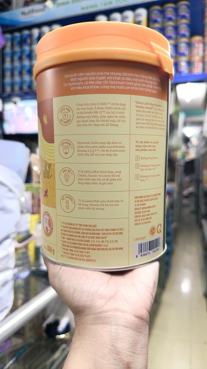 - Sữa Optimum Gold 1 mới bổ sung HMO dưỡng chất vàng có trong sữa mẹ, đạm Whey, 9 tỷ men vi sinh, 20% DHA từ tảo tinh khiết giúp trẻ phát triển toàn diện.