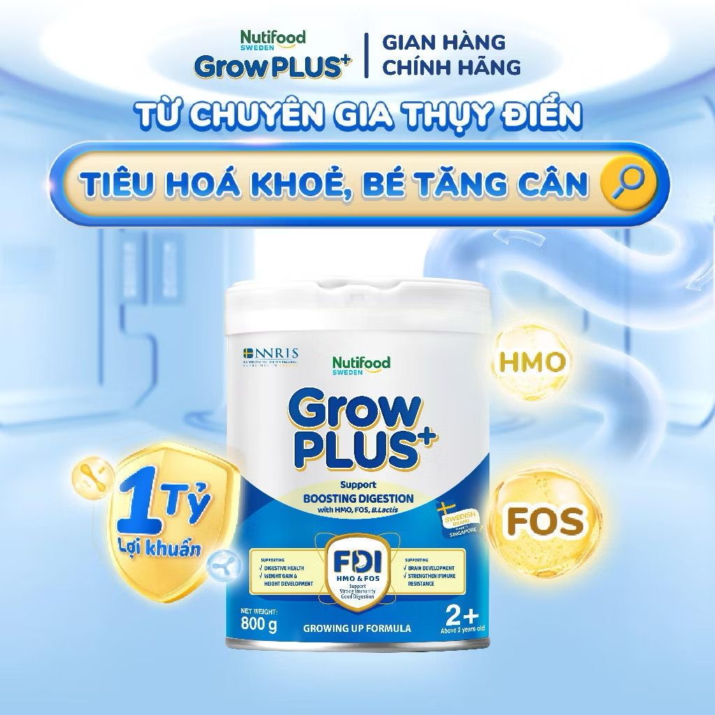 Nutifood GrowPLUS+ với công thức được phát triển bởi Nutifood Thụy Điển, xây dựng nền tảng FDI Đề kháng khỏe, Tiêu hóa tốt.