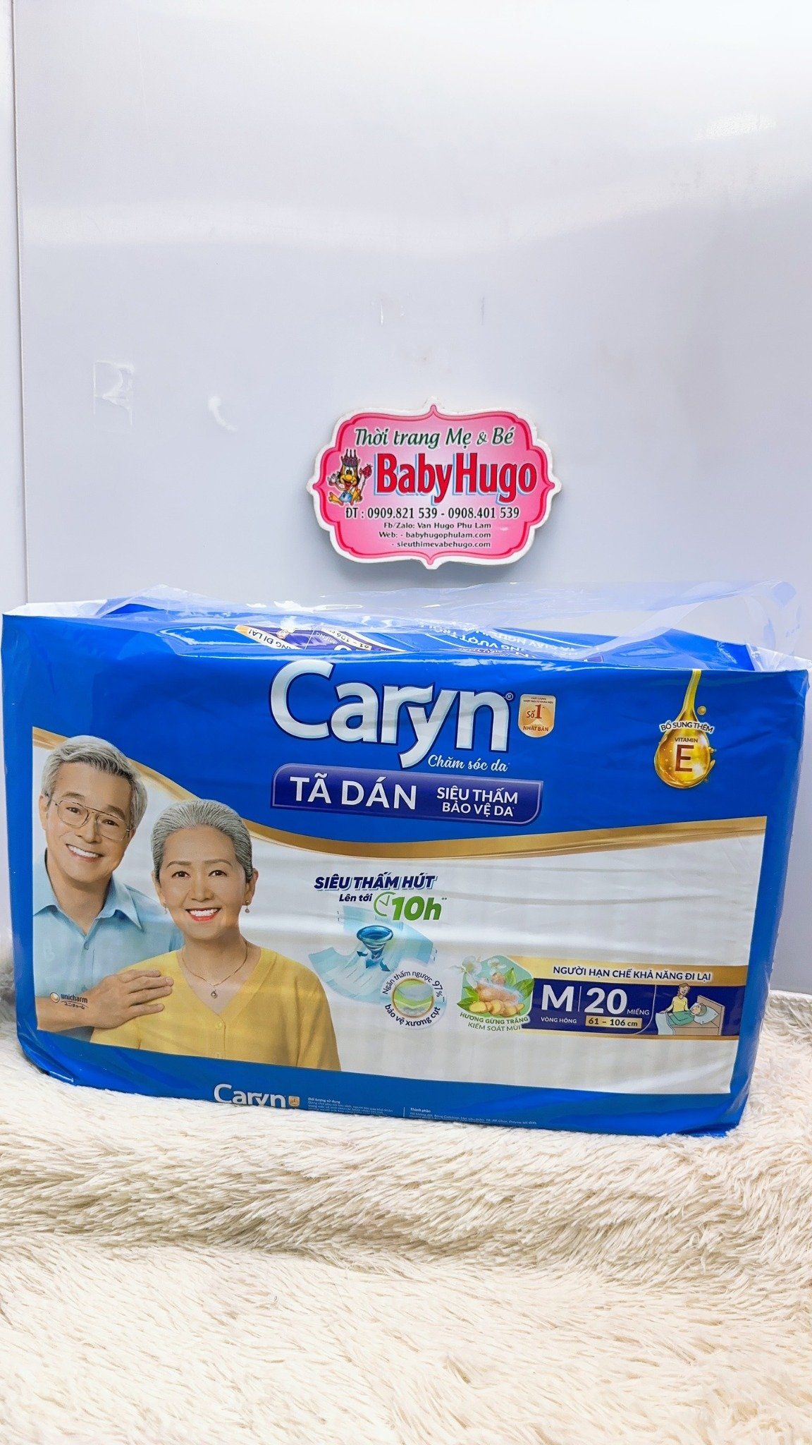 - Tã dán Siêu thấm Caryn với cải tiến “Rãnh thấm siêu tốc’ duy nhất trên thị trường giúp tăng cường độ thấm hút và giữ bề mặt tã luôn khô thoáng, là lựa chọn tốt nhất cho người dùng hạn chế khả năng đi lại .Thiết kế mở tiện thay trong tư thế nằm giúp việc chăm sóc trở nên thật dễ dàng.
