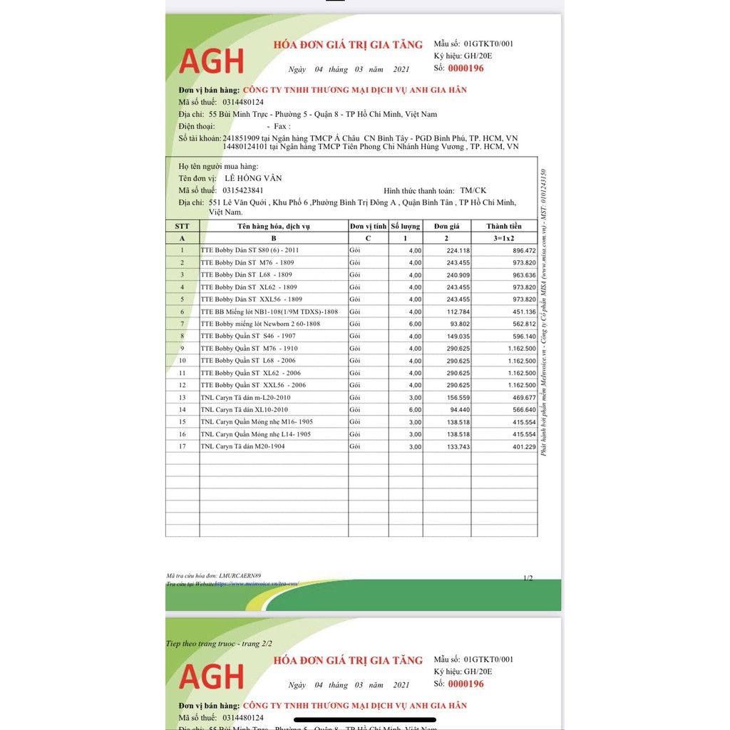 Kích thước tã
