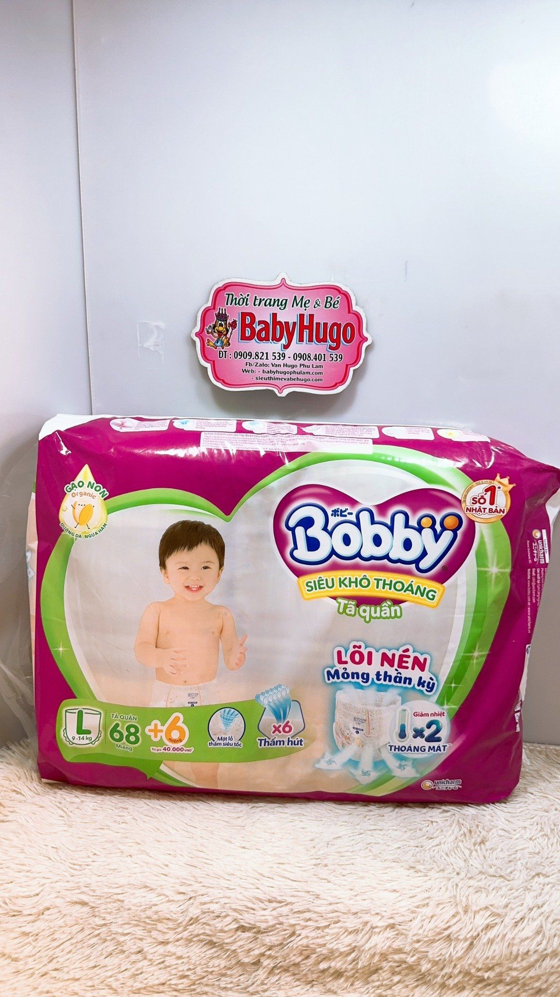 (Tặng 2 miếng) Tã quần BOBBY Size L 68 Miếng (9-13kg)