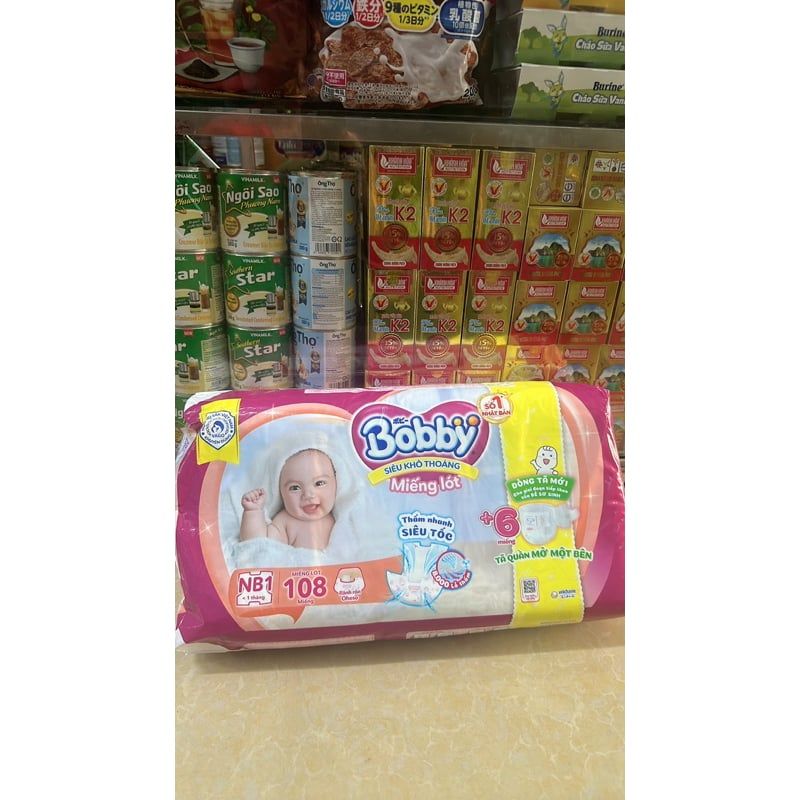 [Tặng 6 miếng] Miếng lót sơ sinh Bobby NB1 108 miếng ( Bé dưới 1 tháng)