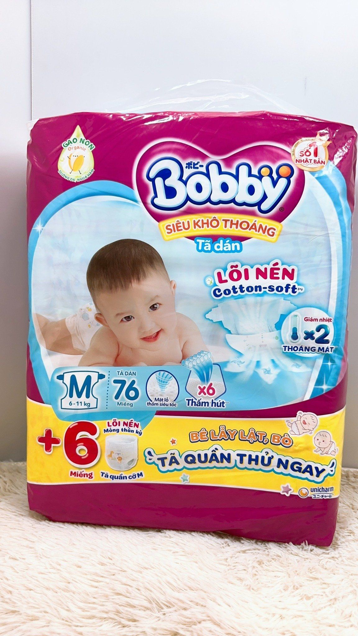+ TÃ DÁN BOBBY SIÊU THOÁNG SIZE M 76 MIẾNG (6- 10kg)