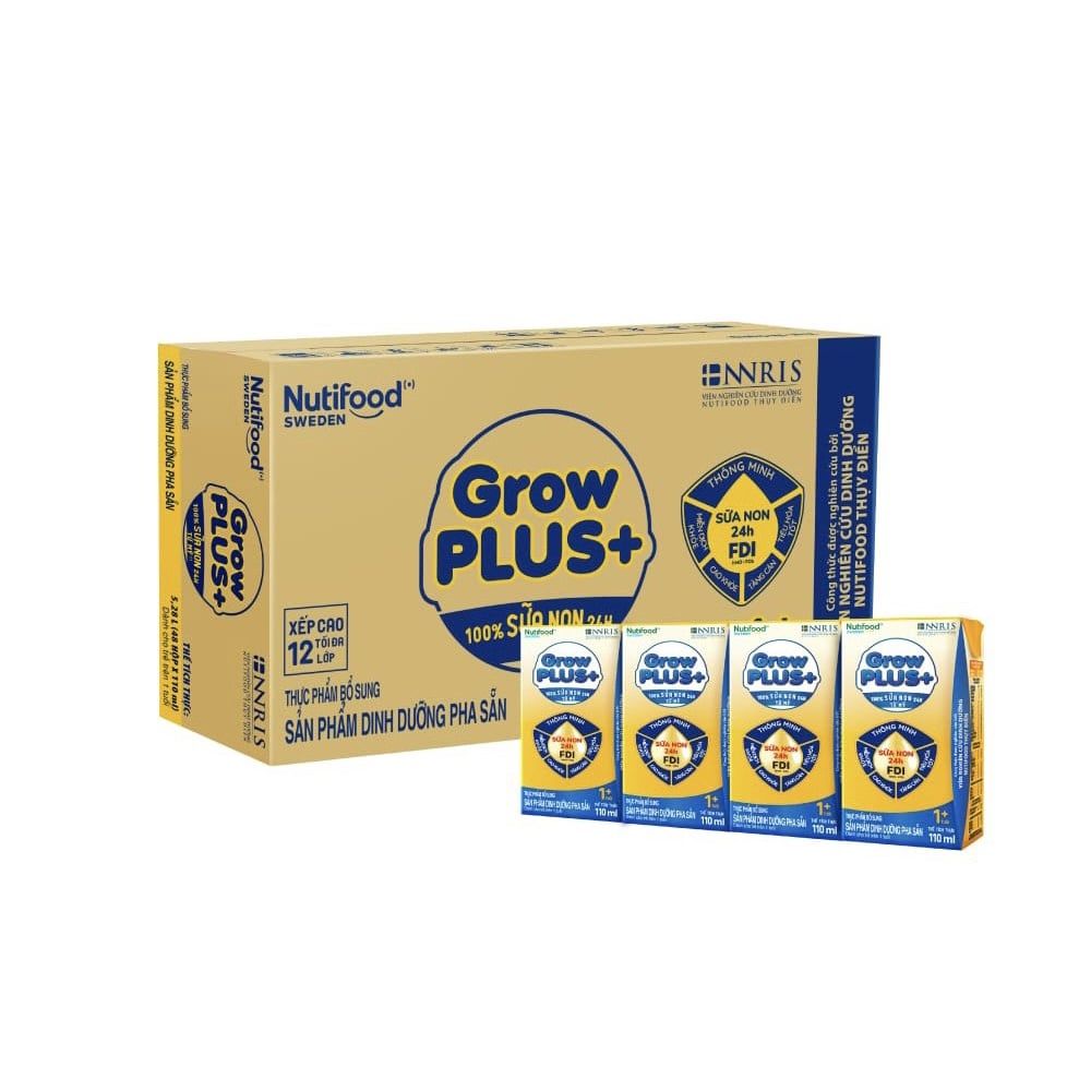 Thùng Sữa NutiFood GrowPlus+ Sữa Non - Vàng 180ml/110ml