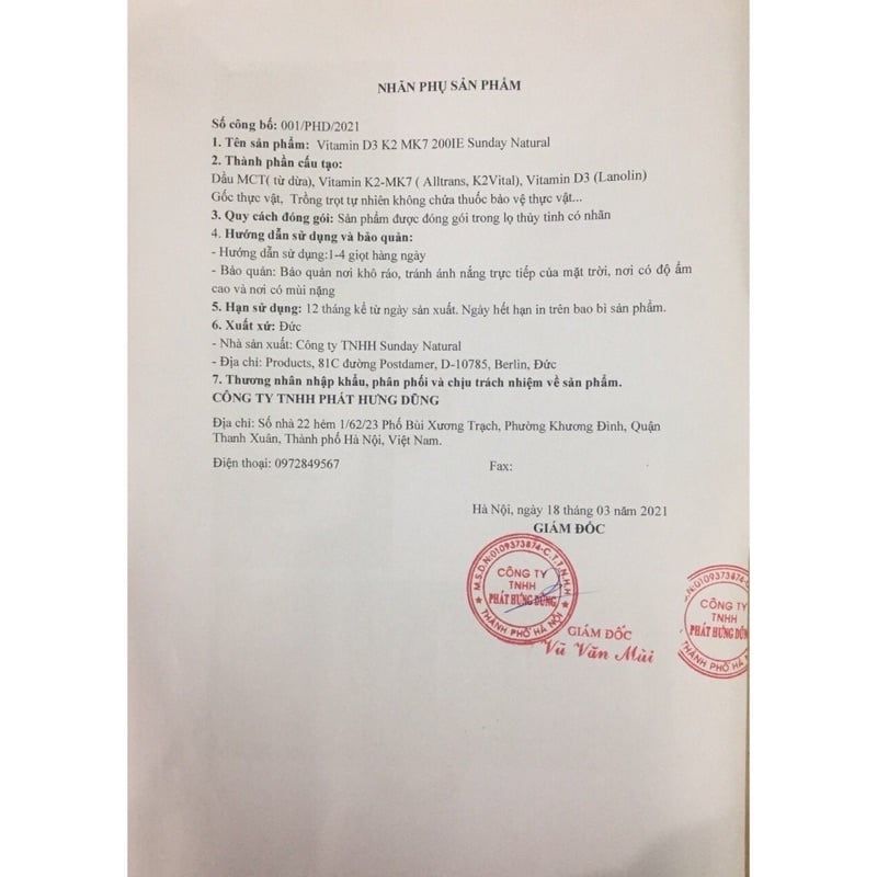 - MÔ TẢ SẢN PHẨM Vitamin D3 K2 Mk7 Sunday Natural 20ml Đức: