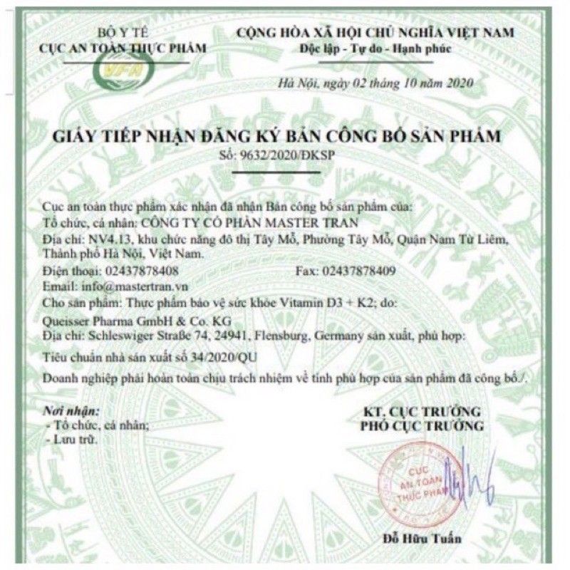 - Thành phần: mỗi giọt chứa 10 μg Vitamin D3 200 IE dẫn xuất giúp canxi được hấp thu vào cơ thể, tối ưu trong hỗ trợ hấp thụ ánh sáng từ ngoài vào cơ thể, giúp phát triển hệ cơ khỏe mạnh và tăng trưởng chiều cao hiệu quả và 15μg Vtm K2 để tối ưu hóa lượng canxi hấp thụ vào máu và xương, từ đó giúp xương răng chắc khỏe và thúc đẩy chiều cao mạnh mẽ cho con, làm giảm nguy cơ lắng đọng canxi ở thành mạch